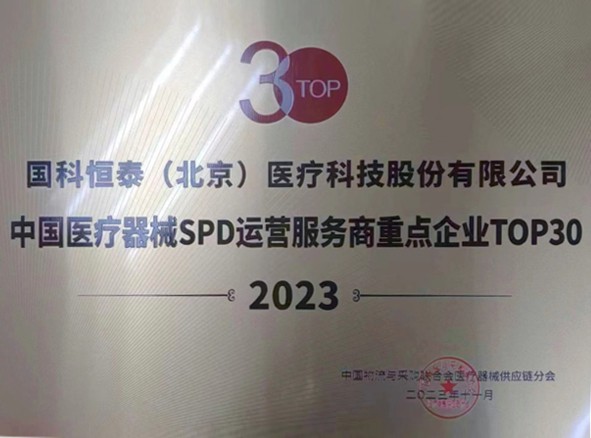 2023年,荣膺“中国医疗器械SPD运营服务商重点企业TOP30”